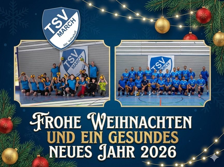 Ein Ereignisreiches und auch spannendes Jahr 2025 geht dem Ende zu. Die Volleyballabteilung des TSV March ist gewachsen. Die Jugend freut sich darauf das Volleyballspiel zu lernen und auch im Erwachsenen Bereich konnten wir viele Neuzugänge registrieren und auch in der Mixed-Liga des Südbadischen Volleyballverbandes ein zweites Team für die Saison 2025/2026 melden. Erfolg ist aber nicht alles. Viel wichtiger ist es das Miteinander und den Spaß am Sport gemeinsam erleben zu dürfen. An dieser Stelle bedanken wir uns bei allen Helferinnen und Helfern, allen Eltern und Bekannten, allen die in irgendeiner Weise geholfen haben Spiele zu machen, unsere tolle Beachanlage zu pflegen oder in sonst eine Weise dazu beigetragen haben das wir unseren tollen Sport ausüben können. Ein ganz besonderer Dank geht an alle Sponsoren und Unterstützer, Academy Fahrschule Fiek GmbJ, Zimmerlin Edelstahl Technik GmbH , Sparkasse Freiburg-Nördlicher Breisgau, Piu Caffe Deutschland, Volleyballheld.de / Klubshop, welche uns auch dieses Jahr wieder mit Trikots, Spenden oder anderen Dingen unterstützen konnten. Wir hoffen das wir auch das nächste und die folgenden Jahre auf die Unterstützung aller hoffen dürfen und wünschen in diesem Sinne allen Menschen ein frohes, besinnliches Weihnachtsfest und ein gutes und vor allem gesundes neues Jahr 2026.